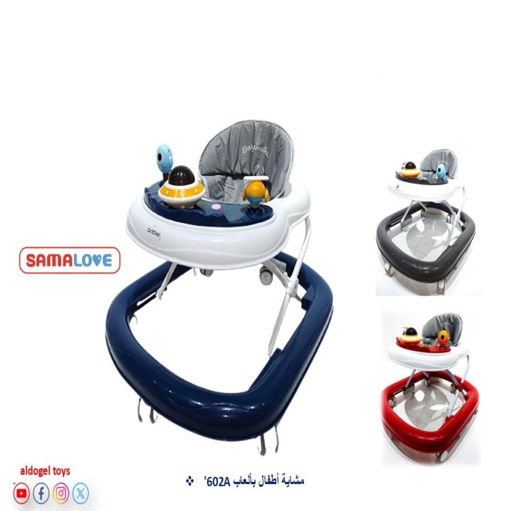 The SAMA LOVE 602A baby walker combines safety and fun in a stylish, easy-to-use design for indoor use. The front features a cute toy tray with a dome and interactive buttons that capture your little one’s attention and encourage them to reach out and move confidently. The wide base provides excellent stability on tiles and parquet flooring, and the multi-directional wheels allow for quick and smooth movement and maneuvering around furniture. The padded fabric seat ensures comfort during extended use and is easily removable and cleanable.