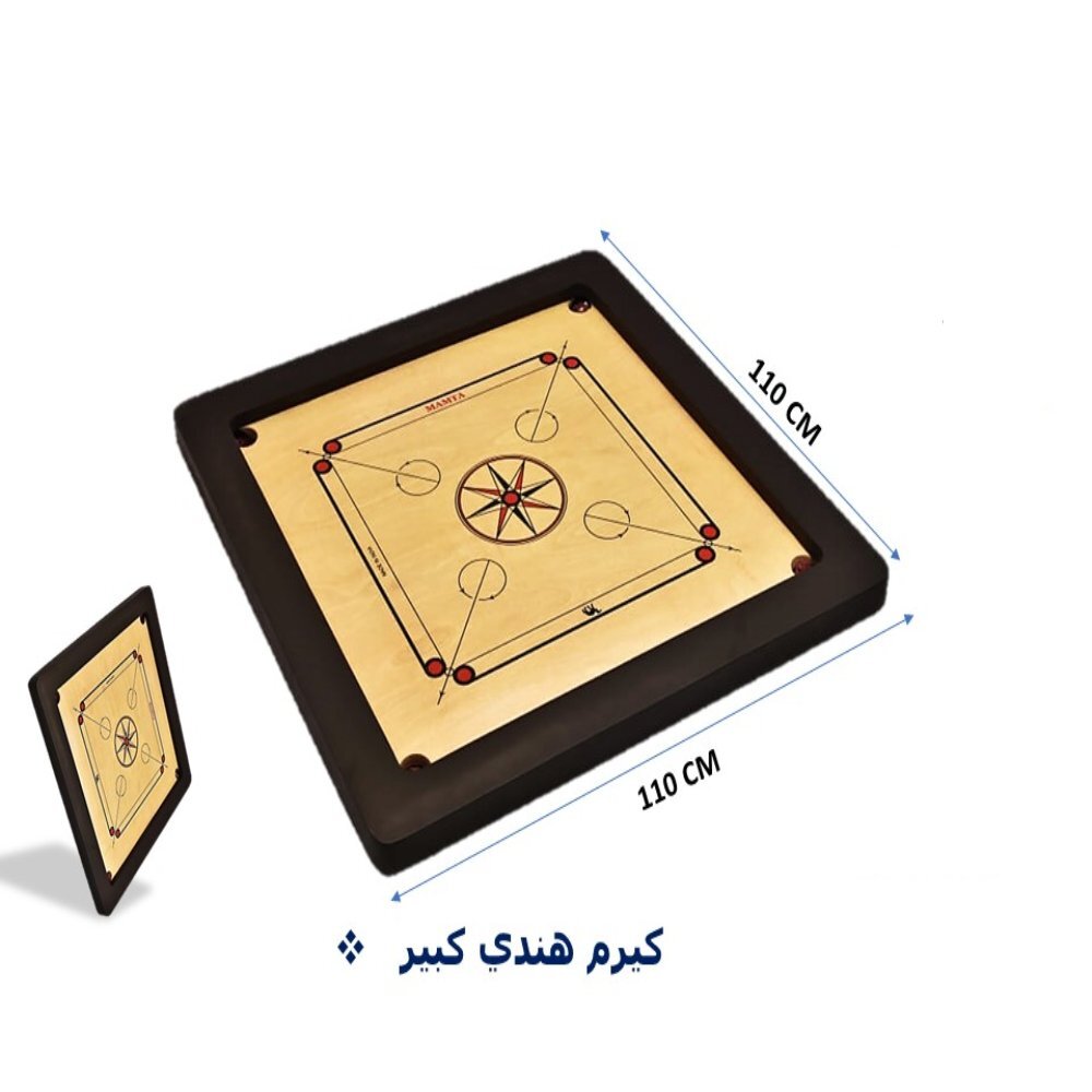 The large 110x110cm Indian carrom board offers a luxurious gaming experience and a more comfortable surface for accurate throws. The polished wooden surface ensures smooth puck glide and minimizes chipping during gameplay, while the thick black frame provides excellent edge protection and greater stability on the table. The four corner slots are clearly defined to speed up scoring and increase the excitement of the challenge, with classic center graphics reflecting the authenticity of Indian carrom.