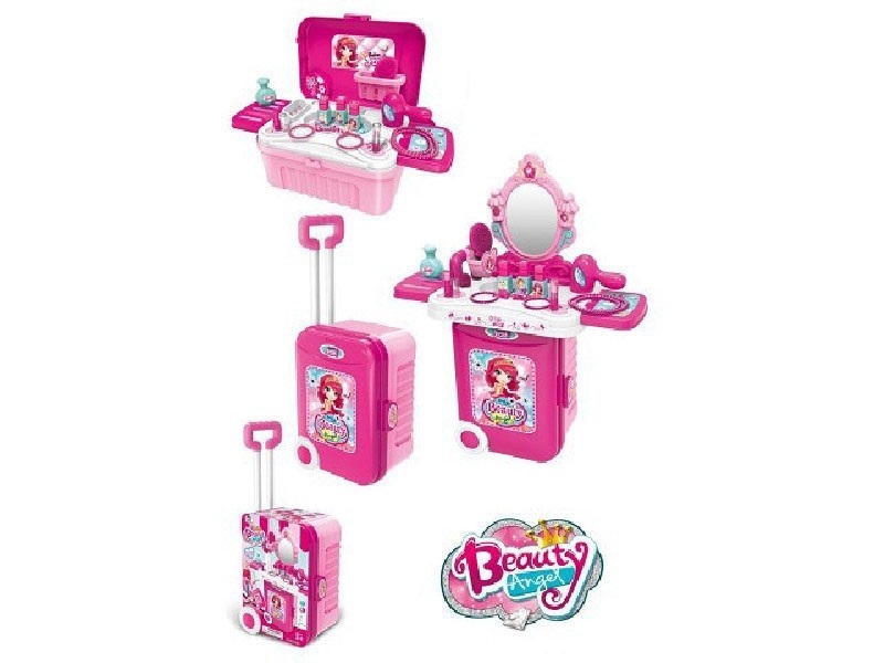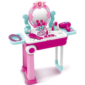 A unique girls’ vanity set with a pull-out bag design that easily transforms into a complete vanity with a mirror and beauty accessories. It provides a fun pretend play experience for your child anywhere, whether at home or when visiting others.