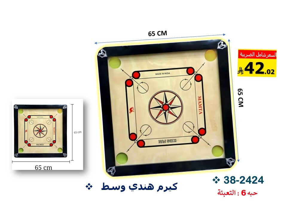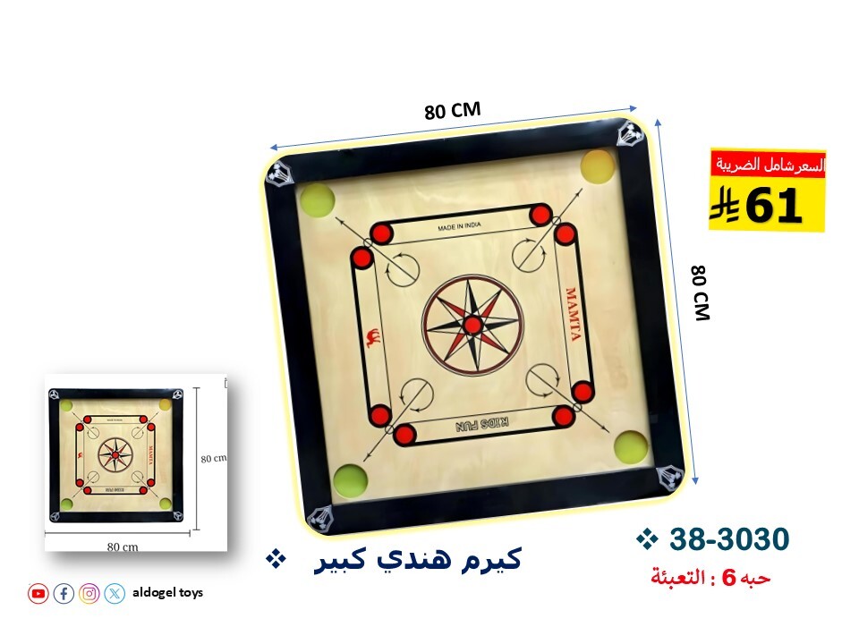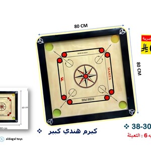 This Indian carrom board combines a practical size with the classic feel of this beloved game. Measuring 50 x 50 cm, it offers ample space for comfortable gameplay without taking up too much room in your home or lounge. The polished wooden surface allows the pieces to glide smoothly, while the black frame maintains a sleek look and protects the edges from scratches. The four clearly marked corner holes make scoring easier and enhance the challenge for players. Whether you’re trying carrom for the first time or simply looking for a simple board for family gatherings, this size is perfect for quick games and encourages friendly get-togethers. Made in India, the board exudes an authentic feel inspired by the game’s birthplace, and at an affordable price, it’s an easy way to add a relaxing and entertaining game to your collection.