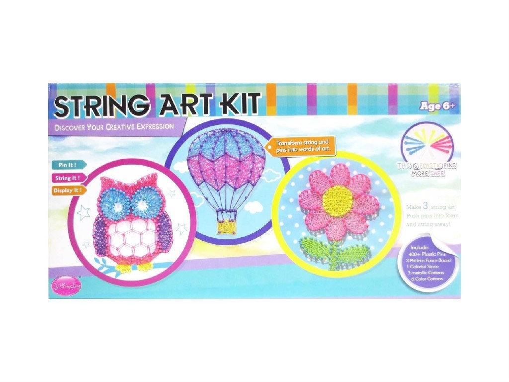 A fun craft kit for creating string art using yarn and pins. Children wrap yarn around templates to make beautiful shapes like flowers, owls, or hot air balloons. An educational toy that combines creativity, focus, and fun.