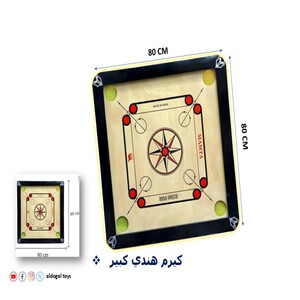 حجم عملي: لوح كيرم هندي مقاس 50×50 سم مناسب للطاولة وما ياخذ مساحة في البيت أو الاستراحة.