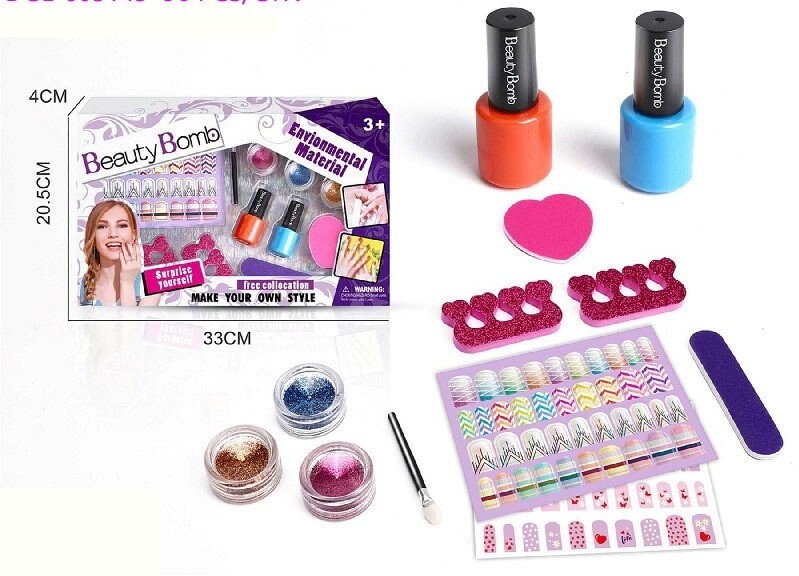استيكرات اظافر مع مبرد ولونين طلاء اظافر و3 ألوان قليتر