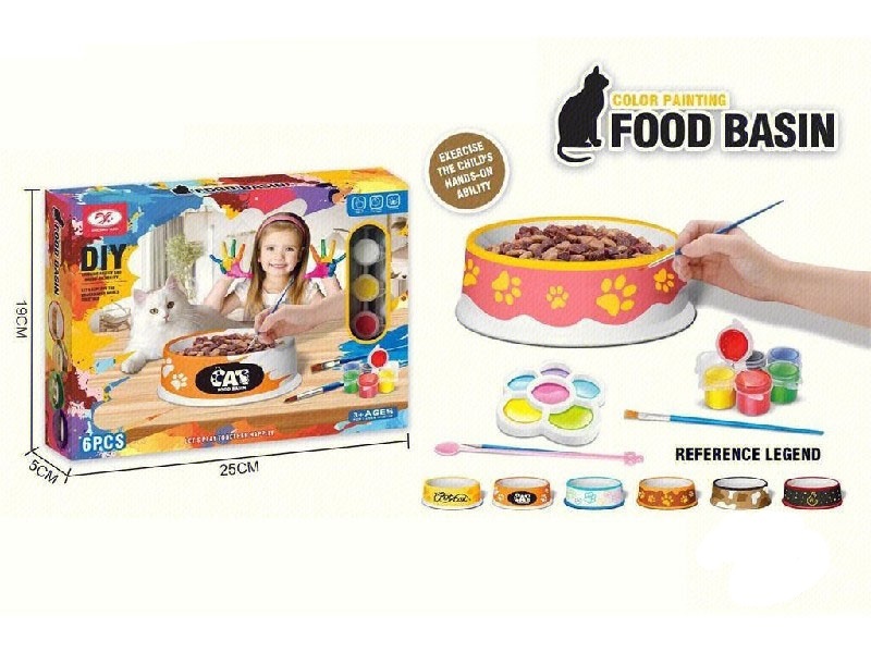 لعبة الرسم على وعاء القطه تحتوي على وعاء و ألوان وفرشاة تلوين