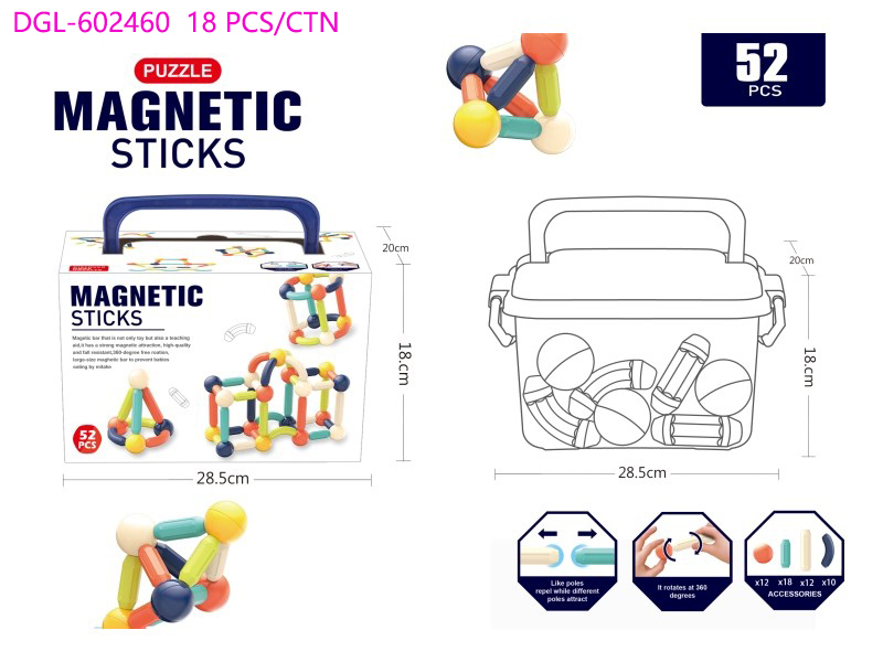 حقيبة الاعواد المغناطيسية تحتوي على 52 قطعة من الاعواد والكور الملونة ليبدع طفلك باشكال مميزة من خياله