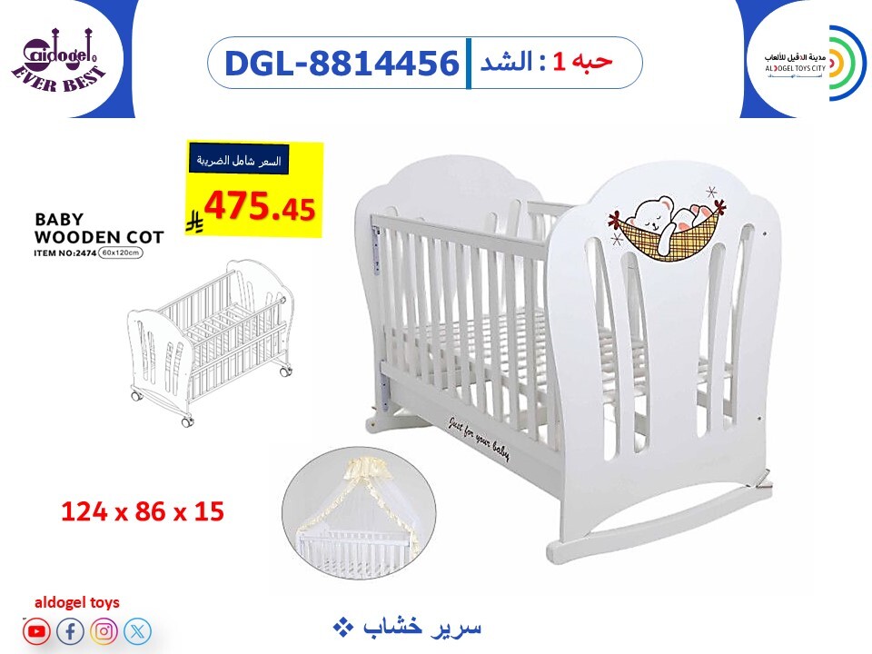 ميزة الهزّ تساعد ينام بسرعة وبشكل أهدى، ومعه إمكانية تركيب ناموسية لحماية إضافية.