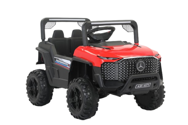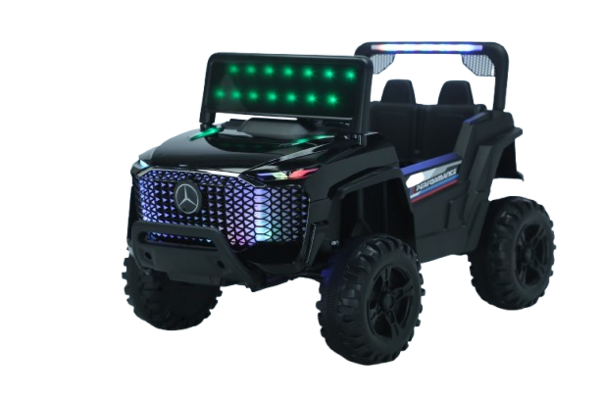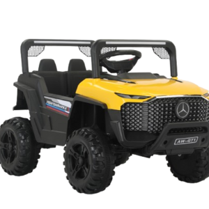 سيارة الأطفال الكهربائية DGL-8814077 مصمّمة بروح سيارات الأوفロード: إطارات كبيرة بنقشة طرق وعرة وهيكل مرتفع يمنح حضور قوي ويزيد ثبات السيارة على الأسطح المستوية في الفناء. الواجهة الأمامية المزخرفة والقوس العلوي يعطون إحساس المغامرة، بينما المقود ومساحة الجلوس يخلّون القيادة سهلة وممتعة للصغار.