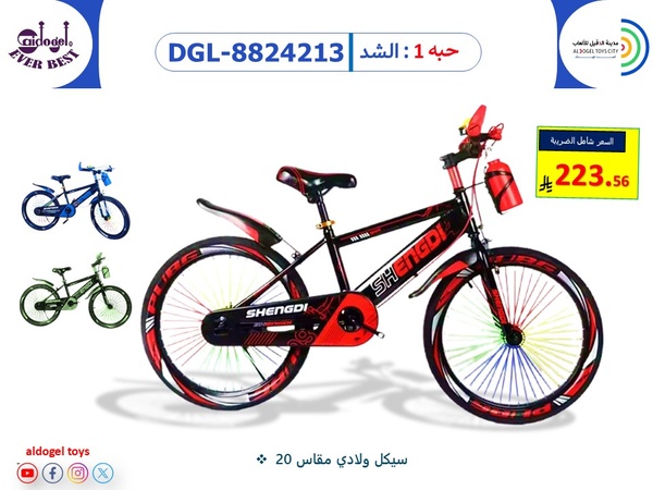 سيكل ولادي مقاس 20 بوصة بتصميم رياضي جريء يناسب الطلعات اليومية والمشاوير داخل الحي. الهيكل مصنوع بعناية ليجمع بين الصلابة والخفّة، وهذا يعطي سلاسة في القيادة وثبات ممتاز على الشوارع المستوية وبعض المسارات الخفيفة. مزوّد بحامي سلسلة كامل يحافظ على سلامة الطفل وملابسه، بالإضافة لرفارف قدّام وخلف تقلّل تطاير الماء والتراب وتخلّي التجربة أنظف. المقعد والمقود يُضبطون بسهولة عشان يحصل ولدك على ارتفاع مناسب ووضعية مريحة تمنحه تحكّم أفضل. علبة الماء الأمامية عملية جدًّا، تخليه يشرب وقت ما يحتاج بدون ما يوقف اللعب. الإطارات العريضة تمنح تماسك جيّد، والتصميم العام جذّاب بألوان قوية تخلي السيكل مميّز بين أقرانه. خيار مثالي لعمر الابتدائي وما بعده، ويصلح كهدية تخلّي الطفل متحمّس للحركة والنشاط كل يوم.