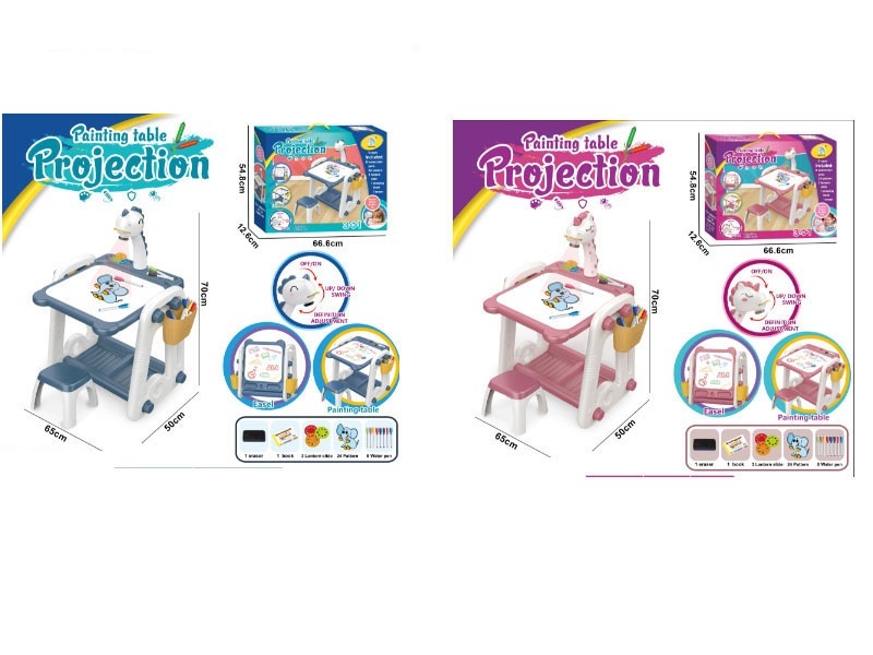 طاولة الرسم المضيئة تحتوي على ألوان ورسومات وعدسات مضيئة مختلفة