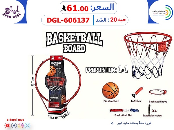 طقم كرة السلة الجداري يعطيك متعة السلة في أي مكان وبأقل تكاليف. الحلقة الحديد المتينة مع الشبكة الملونة تتحمل اللعب اليومي وتعطي شكل رياضي مرتب على الجدار. التركيب بسيط: تثبّت القاعدة باستخدام ٤ مسامير تمدد المرفقة وخلال دقائق يكون الطقم جاهز. ومع وجود كرة ومنفاخ في العبوة، ما تحتاج أي تجهيزات إضافية—نفخ بسيط وتبدأ المباراة. حجمه الصغير عملي لغرف الأطفال والممرات والاستراحات، ويحمّس الصغار على الحركة وتقليل وقت الشاشات. إذا تبغى طقم خفيف وسعره مناسب ويؤدي الغرض، فهذا الخيار ممتاز