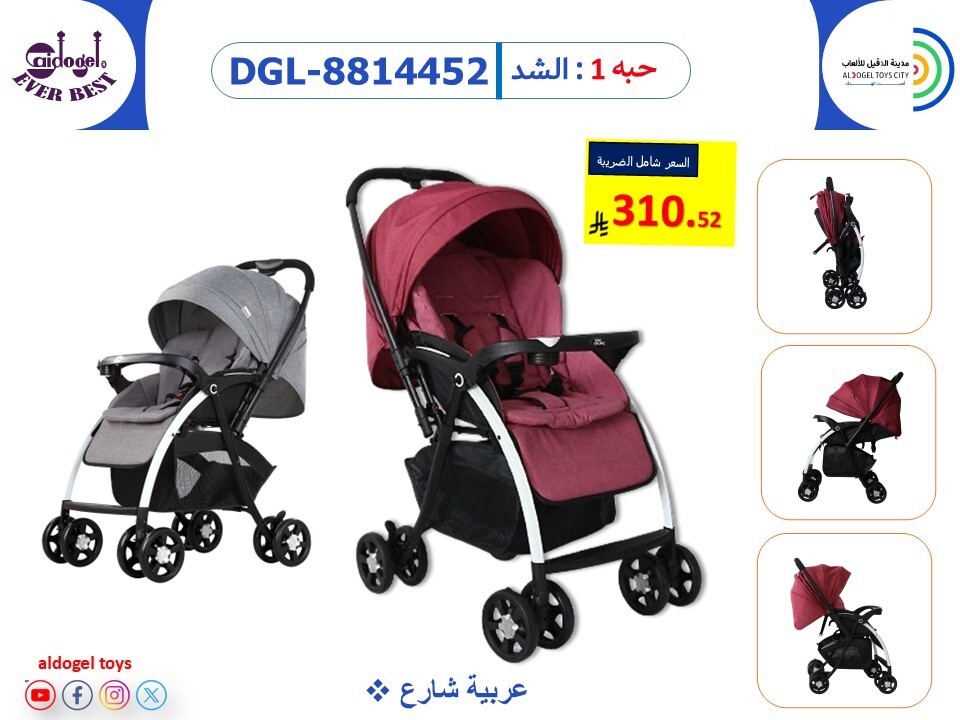 عربة أطفال “DGL-8814452.” مصممة لتمنحك راحة وسهولة أثناء التنقل مع طفلك من الولادة وحتى عمر 3 سنوات (36 شهر).