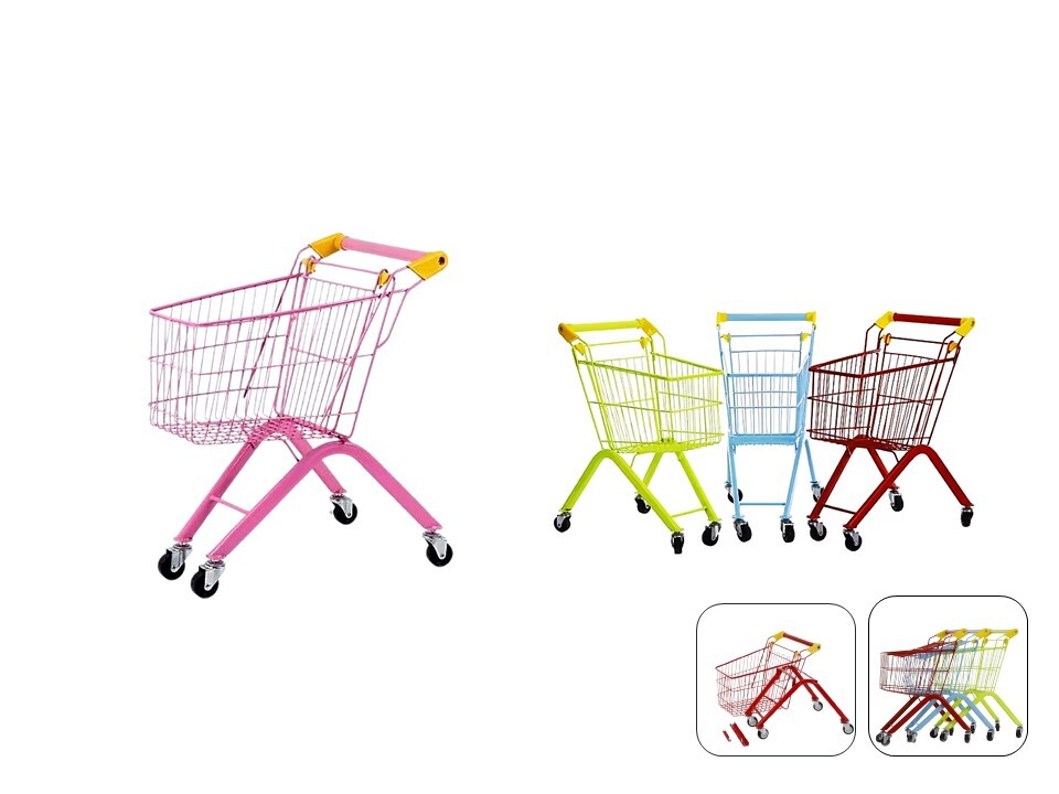 عربة تسوق أطفال حديد بتصميم واقعي يشبه عربات التسوق الحقيقية، تمنح الأطفال تجربة لعب ممتعة وتعليمية في نفس الوقت. مصنوعة من هيكل معدني قوي مع عجلات متحركة لسهولة الحركة، مما يجعلها مثالية للعب التخيلي داخل المنزل أو في مساحات اللعب.