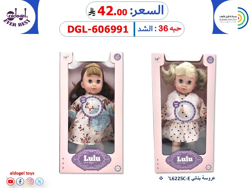 عروسة Lulu موديل L6225C-E برمز DGL-606991 تقدّم لطفلتك لعبة رقيقة تجمع بين المتعة والفائدة. العلبة الأنيقة تحتوي على عروسة بملابس لطيفة وتفاصيل محببة، مع خيار Try Me الظاهر على العبوة لتفاعل بسيط يزيد الفضول (قد يختلف حسب الدفعة). هذه اللعبة تشجّع طفلتك على ابتكار حكايات يومية، ما يثري اللغة والتعبير ويُنمّي الخيال. ومع تغيير الملابس وتمشيط الشعر تتدرّب المهارات الحركية الدقيقة وتتحسّن الموازنة بين اليد والعين. كما تبني العروسة سلوكيات إيجابية مثل التعاطف والمسؤولية أثناء الرعاية والترتيب، وتكون بديلاً هادئًا ومفيدًا عن وقت الشاشة. مناسبة عادةً لعمر 3 سنوات فأكثر