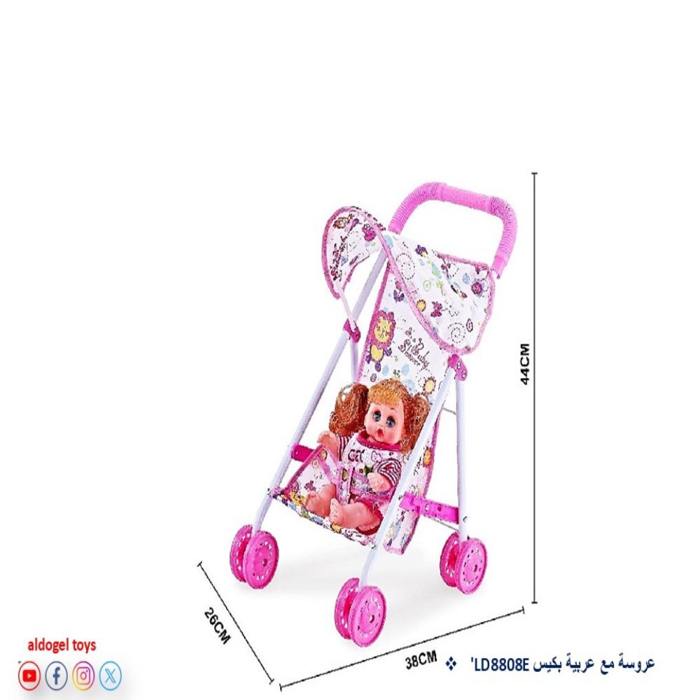 طقم DGL-606912 يجمع بين عروسة لطيفة وعربية لعب قابلة للطيّ بحجم مناسب للأطفال. تصميم العربية وردي برسومات طفولية ويضم مظلّة صغيرة تضيف شكل جميل وتزيد من متعة اللّعب. الأبعاد 44×38×26 سم تجعلها سهلة الدفع والتخزين، والعجلات البلاستيكية تمنح حركة سلسة على البلاط والسجاد الخفيف. تأتي المجموعة معبأة في كيس لتكون جاهزة كهدية وسهلة الحمل أثناء الزيارات.