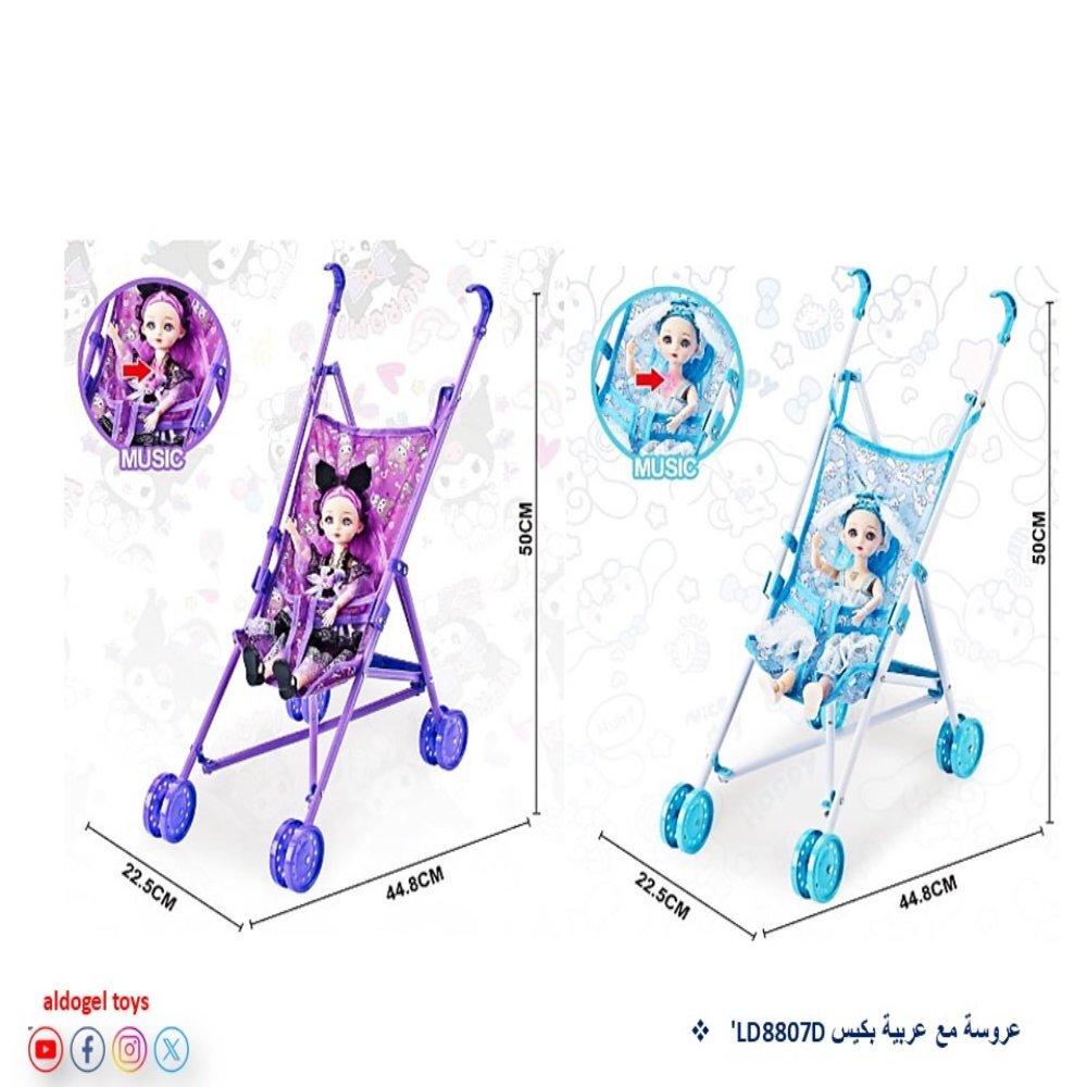 طقم كامل: عروسة + عربية قابلة للطيّ مع موسيقى.