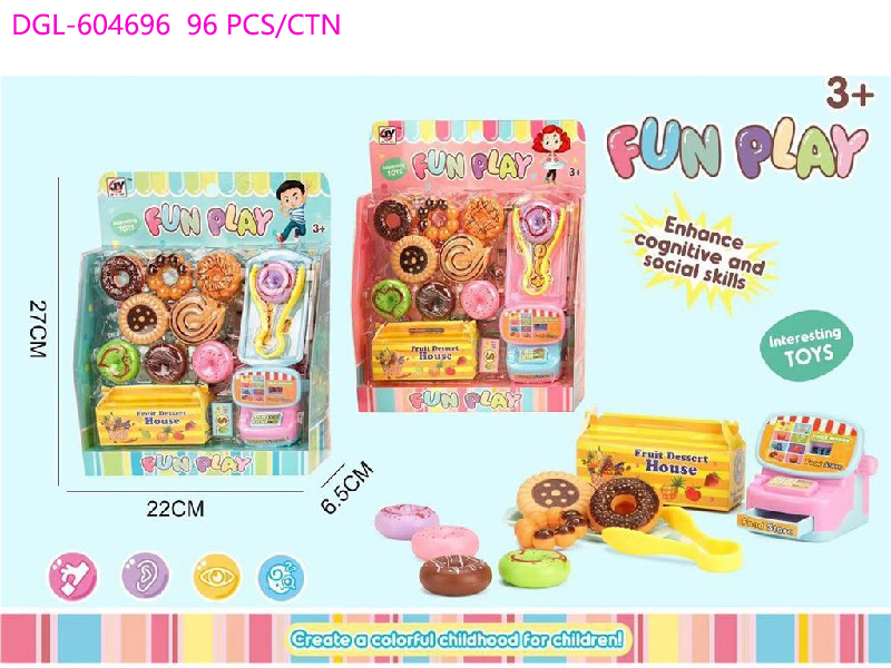 دلّعي طفلك بتجربة لعب لا مثيل لها مع لعبة FUN PLAY! مجموعة متكاملة من الحلويات وأدوات اللعب بألوان زاهية وتصميم آمن، مناسبة للأطفال من عمر 3 سنوات وأكثر. تساعد المجموعة على تطوير المهارات المعرفية والاجتماعية، وتضيف جوًا من المرح والإبداع لكل جلسة لعب.