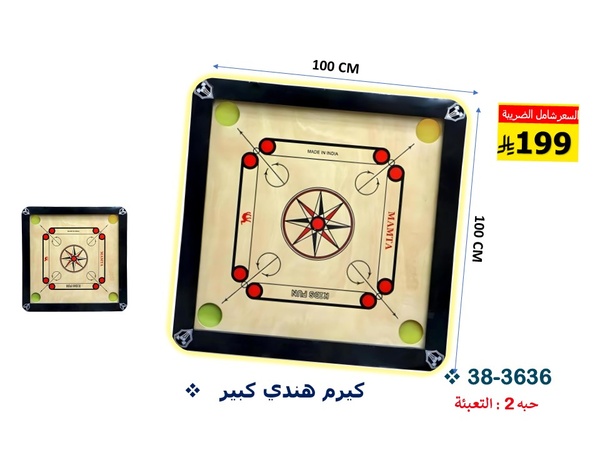 لوح الكيرم الهندي مقاس كبير 100×100 سم هو خيار اللاعبين اللي يدورون تجربة لعب احترافية ومساحة أريَح على الطاولة. بفضل السطح الخشبي المصقول تنزلق الأقراص بنعومة وتتحقق رميات أدق، بينما الإطار الأسود المتين يحافظ على اللوح ويحميه من الصدمات المتكررة. فتحات الزوايا الأربع مصممة بوضوح لتسريع تسجيل النقاط وزيادة حماس المنافسة. المقاس الكبير مناسب للجلسات الطويلة والبطولات الصغيرة في البيت أو الاستراحة أو المقهى، ومع لمسة الصناعة الهندية تحصل على أصالة اللعبة من موطنها.