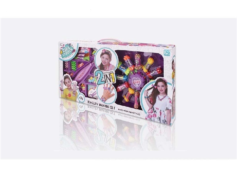 مجموعة صانعة الاكسسوارات تحتوي على عدة قطع تساعد الطفله في صناعة اكسسوارات الشعر والمجوهرات