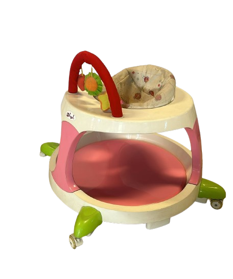 كرسي مشي للأطفال متعدد الوظائف بتصميم أنيق وجذاب، يتميز بألوانه الوردية والبيج مع قاعدة متينة وخفيفة الحركة، مزود بمقبض ملون يمكن وضعه للعب أو التحكم، ومقعد مريح ومبطّن يعزز الاستلقاء والدعم للطفل. يُعد هذا الكرسي وسيلة مثالية لمساعدة الطفل على التفاعل مع البيئة الخارجية والداخلية بطريقة ممتعة وآمنة.