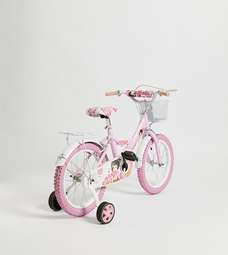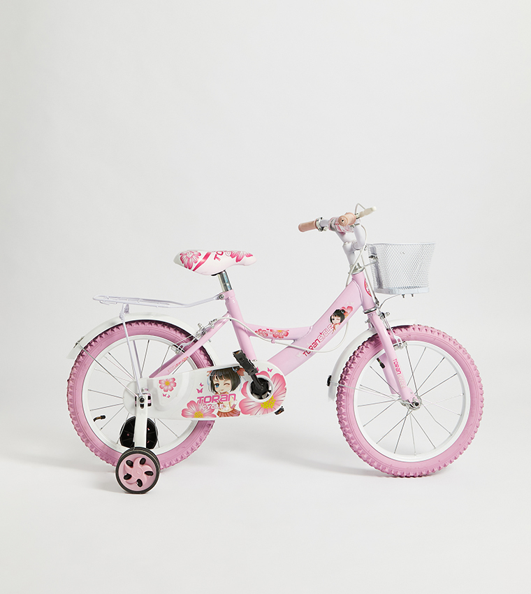 - تصميم جذاب وملون: تأتي الدراجة بلون وردي ناعم مع رسومات طفولية مرحة وشخصية كرتونية على الهيكل، مما يجذب انتباه الأطفال ويدفعهم للاستمتاع بقيادتها.