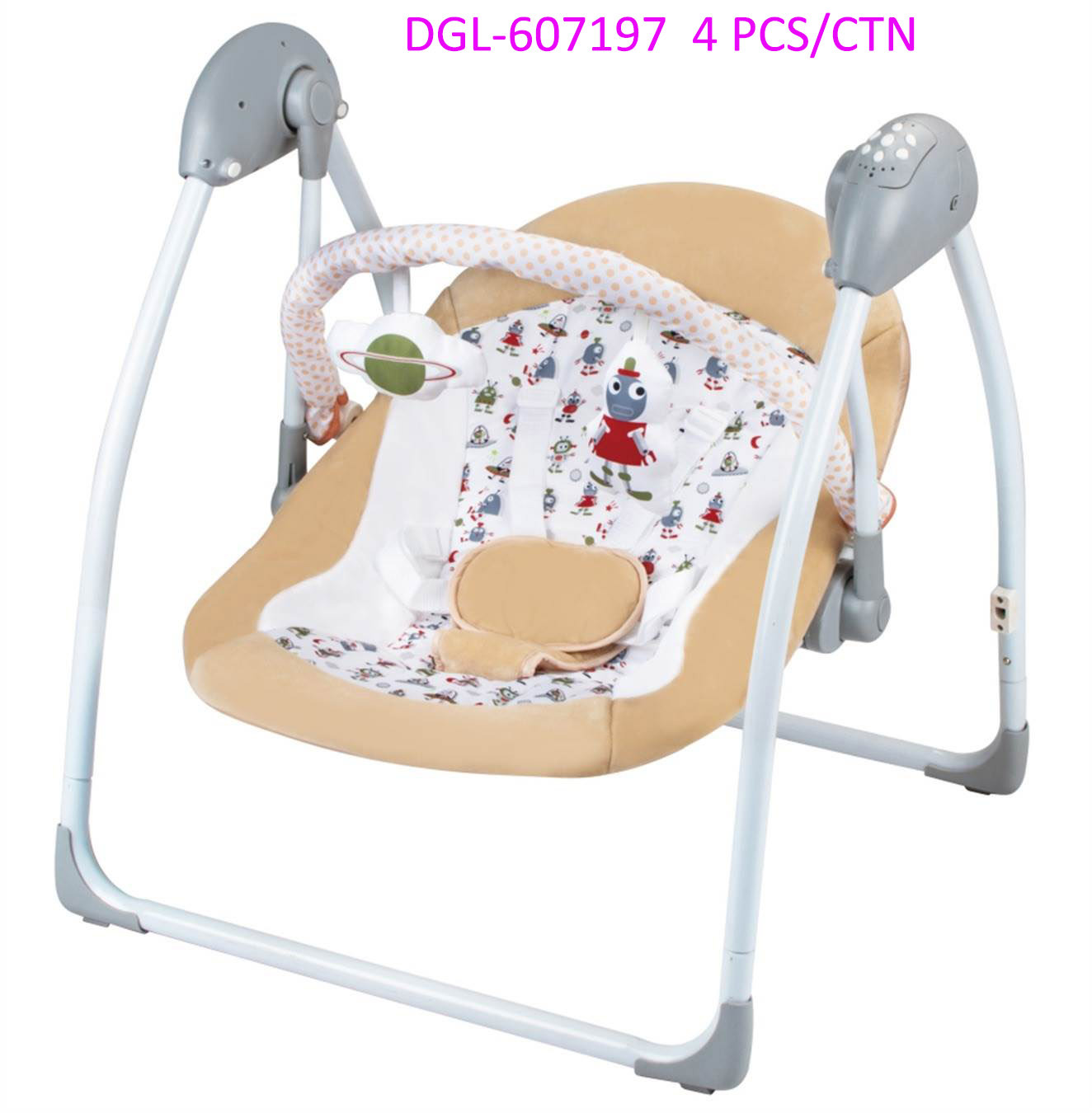 • تشغيل إلكتروني: مزودة بوحدة تحكم جانبية لتشغيل الاهتزاز أو الموسيقى لتهدئة الطفل.