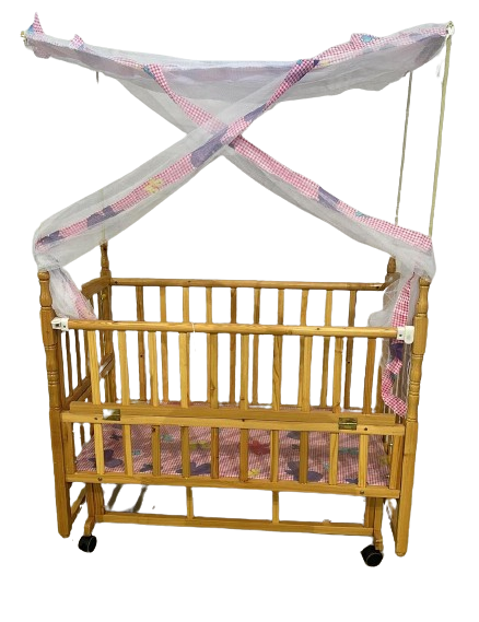 سرير الأطفال المعلق على شكل سرير خشبي مزود بغطاء شبكي واقٍ، مصمم خصيصًا لتوفير بيئة آمنة ومريحة للرضع والأطفال الصغار. يتميز هذا السرير بمظهر جذاب وأنيق، يجمع بين العملية والجمال، مع تصميم يسمح بحماية الطفل من الحشرات والهواء الخارجي أثناء اللعب أو الاسترخاء في الهواء الطلق أو الداخل.